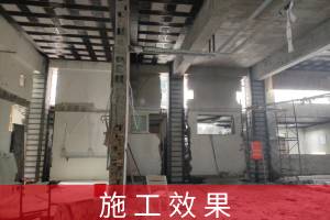 (6)施工內(nèi)容:對承載力、軸壓比和節(jié)點域不滿足要求的框架柱采用外包角鋼加固,涉及一層~三層共42根柱;對承載力不滿足要求的混凝土梁采用粘鋼加固,部分板底粘碳纖維布加固。
