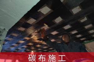 (5)施工內(nèi)容:對承載力不足框架柱采用混凝土加大截面加固;對各層承載力不足的混凝土梁采用加大截面、粘貼碳纖維加固;對承載力不足的局部樓板進(jìn)行粘貼碳纖維布和板底增設(shè)鋼梁法加固等。