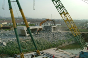 ③鋼筋混凝土剪力墻、樓板、框架梁、砼樓梯等構(gòu)件的鉆切分塊吊裝拆除。